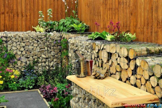 Отделка сада с помощью габионных конструкций.