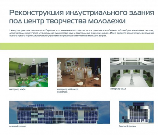 Реконструкция индустриального здания под центр творчества молодежи