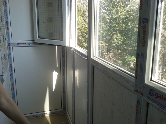 Вид французского балкончика из нутри, сверху стекло, с низу заменитель стекла-Сендвич панель. Сендвичь панель даёт теплоотдачу в полтора кирпича. Очень красивый и эстетичный вид из нутри