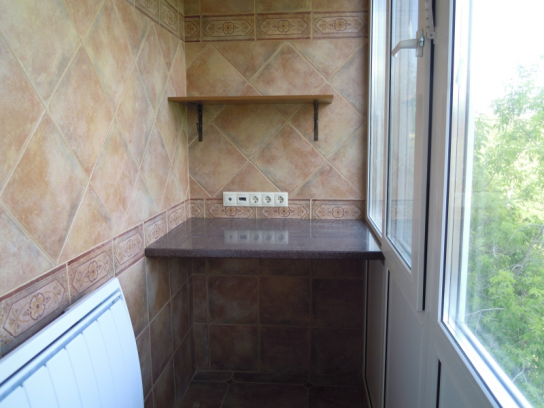 Была выполнена работа по остеклению и облагораживанию балкона кафелем.