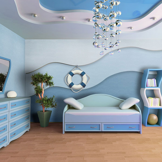 Дизайн детской с обоями Wellton Decor Волна