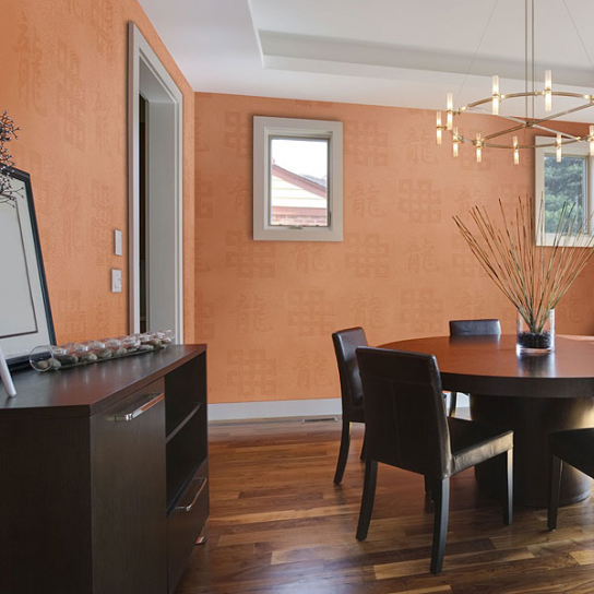 Дизайн столовой с обоями Wellton Decor Иероглиф