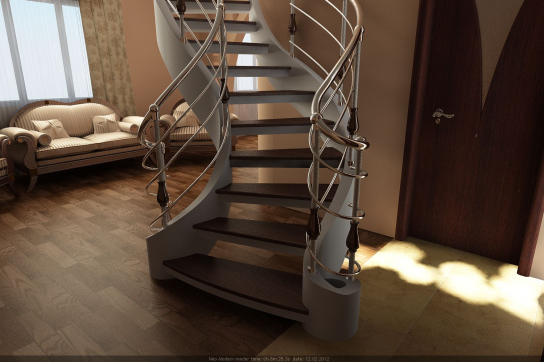 Лестница монолитная в отделке. 3D визуализация рабочего проекта