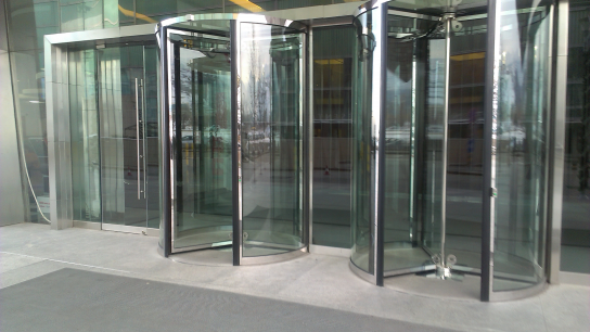 Нашей компания был осуществила изготовление, монтаж, и пуско-наладку, карусельных дверей, на центральном входе в Есентай тауэрс с напольным, автоматическим приводом.