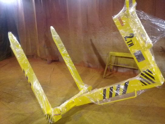 Конструкция захвата позволяет изменять центр тяжести захвата с грузом и без, а также регулировать передвижные вилы под различные габариты груза.