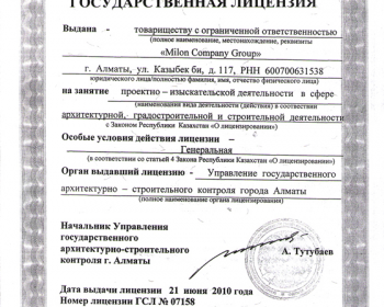 Лицензии Milon Company Group