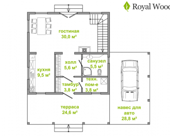 Все виды строительных работ: начиная от укладки фундамента до монтажа стен и кровли осуществлялись бригадой профессиональных строителей компании Royal Wood. Все работы с покраской заняли 4 месяца. Сейчас дом отстаивается, чтобы стены дали усадку. В 2013 году планируется завершение строительства данного объекта “под ключ”.