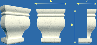 Каждая декоративная деталь имеет несколько вариантов форм и поверхностных покрытий, напр. имитация неполированного травертина или предназначенные под покраску (подробнее спрашивайте у наших консультантов). Детали производятся по технологии «Супер Эластик» изготавливается из негорючего(!) сертифицированного пенополистирола полностью 35 кг/м3, с последующим армированным эластичным покрытием акрило-каучуковым составом.