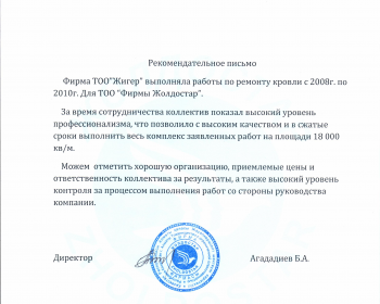 Рекомендательное письмо ТОО "Фирмы Жолдостар"