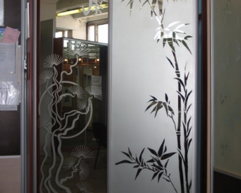 Цельностеклянная перегородка с матовым рисунком