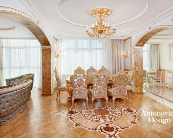 Новый формат портфолио реализованных объектов Студии Элитных Интерьеров Antonovych Design, в виде музыкального видеоряда, позволит в деталях рассмотреть все прекрасные моменты роскоши. Виртуальная прогулка под прекрасную музыку начинается с просторного холла квартиры на Новопечерских Липках. Каждый уголок квартиры дарит невероятное эстетическое наслаждение. Безупречный облик современной классики отразило художественное панно в холле с романтичными акцентами. Невероятно искусный резной декор с сусальной позолотой, который присутствует практически во всех комнатах, изящно подчеркивает элитный статус квартиры. Роскошные ткани, элитные обои и современные методы освещения, все это очень гармонично объединили талантливые дизайнеры, Елена Антонович и Екатерина Антонович, в завершенную картину уютного интерьера с респектабельным и аристократичным шармом. Наслаждайтесь прекрасным видео, которое подарит Вам приятные моменты и, возможно, подскажет тот облик нового дома, о котором так давно мечталось. Мы с радостью воплощаем все мечты о роскошном и уютном доме и создаем уникальные по красоте интерьеры. И этот дизайн квартиры на Новопечерских Липках яркое тому подтверждение.
