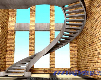Лестница монолитная винтовая в черновом варианте. 3D визуализация рабочего проекта