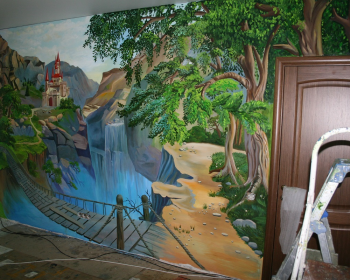 В заключении необходимо отметить, что мы осуществляем художественную роспись стен с помощью высококачественных и экологически чистых профессиональных материалов.