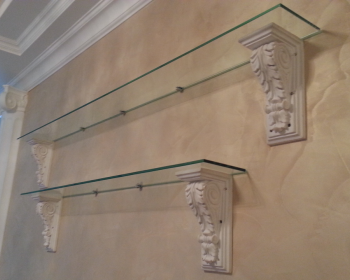 Стеклянные полки с декоративными креплениями