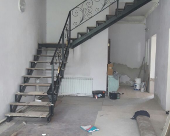 внутридомовая лестница с кованными пирилами без отделки деревом