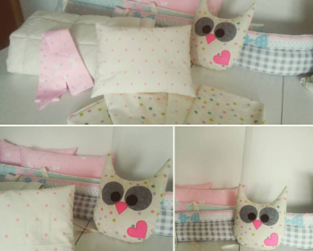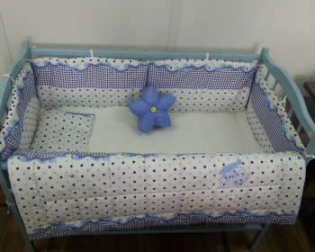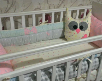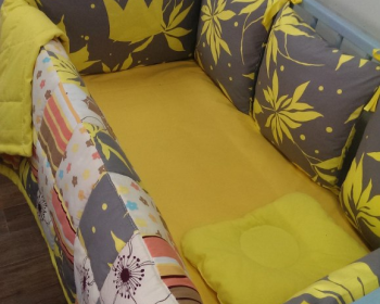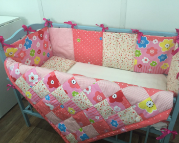 Делаем комплекты для манежей на заказ. Комплект для кроватки малыша изготовлен из сатина – это 100% натуральная ткань из хлопка. В качестве наполнителя использовано синтетическое волокно - это экологически чистый материал нового поколения, не вызывающий аллергии. За счет пористой структуры, пропускает воздух и влагу, а также хорошо удерживает тепло и легко поддается машинной стирке. Сочетание ткани в лоскутном шитье приятно радует глаз, создает искусный интерьер комнаты и развивает воображение и зрение ребёнка. Мягкие бортики обеспечивают комфорт и безопасность для малыша.