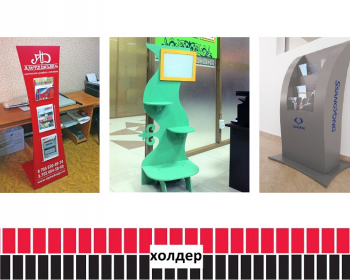Холдер - подставка с кармашками или полками для рекламных материалов, раздаточного материла, флаеров, визиток. Вид POS материала, предназначенный для демонстрации и одновременного хранения рекламной продукции, маркетинговых материалов.