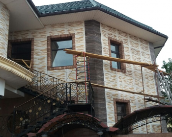 Заказ был на панели 35 плотности 30 мм, цвет состаренное дерево, термооткосы коричневый антик, угловые в коричнево, серо, белую полоску.