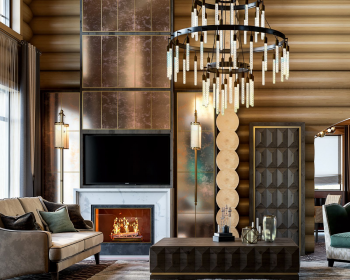 Интерьер деревянного дома получился весьма рустикальным, но при этом, он не выглядит старомодно или грубо. Натуральная текстура дерева со стен переходит на отдельно стоящую мебель, которая имеет достаточно необычные геометрические и современные по очертанию фасады.