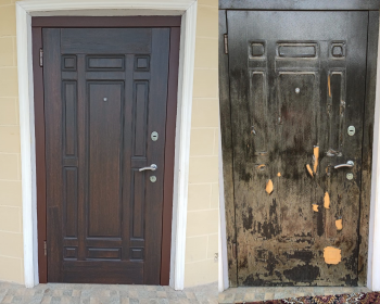 Покраска под дерево МДФ панели входной двери акриловыми резиновыми красками