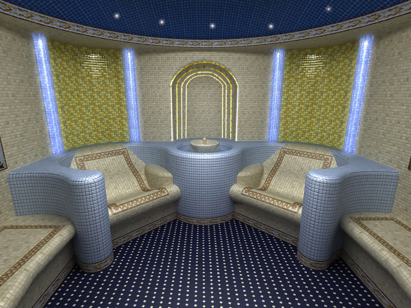 хаммаме (парной) нагреваются стены и пол, а влажный воздух нагнетается с