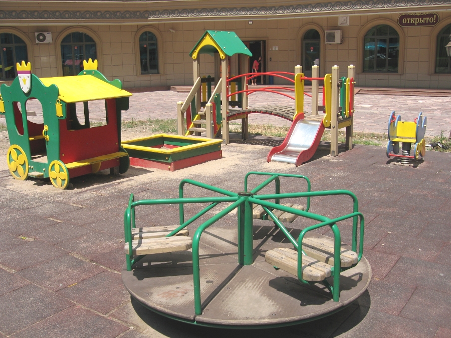 Мурадым Жахметов: Первое — это карусель - то, что считают многие родители самым опасным видом оборудования. Хочу вас уверить, что карусели нашего производства являются совершенно безопасными. Основными требованиями к карусели являются жесткое крепление фундамента и отсутствие любых выступающих граней за пределами круга. Второе основное правило к каруселям, которое игнорируется большинством производителей — это высота платформы над поверхностью земли. Она должна быть не больше 10 см.