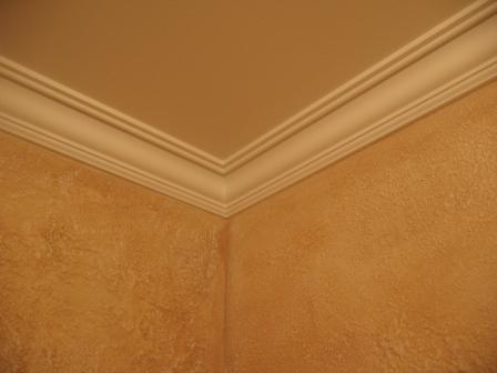 На данном фото (выше) представлена мансардная комната. Если ваша детская находится в мансардном помещении, то потолок следует отделать так же, как и стены. Но, скорее всего, ваша детская имеет стандартный размер и форму, поэтому потолок можно просто покрасить в белый цвет или цвет на два тона светлее основного цвета стен (светло-персиковый, светло-бежевый). По периметру потолка, очень рекомендуем приклеить потолочные карнизы (галтели). Что такое потолочные галтели (карнизы) можно понять по фотографии, выставленной в качестве примера (ниже справа). Есть вариант подешевле – это галтели из пенопласта и подороже (полиуретан). Самые дорогие потолочные карнизы – гипсовые, их мастера делают на заказ. Но именно гипсовые карнизы лучше поддаются декорированию – покраске, приданию объема, нанесению золотой краски или рисунка. Не бойтесь покупать широкие карнизы (от 8 см.): широкие галтели красиво смотрятся, как в маленьких, так и в больших комнатах. Красить карнизы в дизайне этой комнаты, следует в цвет потолка.
