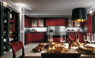 Прежде всего, уделите внимание цвету. Как бы ни был красив тот или иной яркий цвет, обязательно обратите внимание, насколько долго вы сможете на него смотреть. Не забывайте, что кухонный гарнитур, будет «глазеть» на вас со всех сторон. Если вы остановились на ярком цвете, постарайтесь создать в комнате цветовой баланс. На фото слева, красные фасады кухни хорошо скомбинированы с деталями черного цвета, а белый пол, выполненный по технике "мантия", смягчает яркую композицию. Определитесь со стилем гарнитура. Если ваше жилище сделано в стиле современного минимализма и чистых линий, не стоит приобретать гарнитур, выполненный в духе классики старой Италии – это будет смотреться в отрыве от всего помещения, а иногда смешно. Столешница не должна совпадать с цветом фасадных панелей, как минимум, они должны быть в разных тонах одного цвета. Гораздо интереснее смотрятся более контрастные тона – например, тёмные цвета дерева, хорошо сочетаются с мрамором (или текстурой мрамора) изумрудных оттенков. Не бойтесь экспериментировать, советуйтесь с дизайнерами и продавцами, которые уже слышали отзывы других покупателей, доверяйте своей интуиции и, конечно, обращайте внимание на фактуры. Помните, что рисунок, который хорошо смотрится на маленьком кусочке материала, может долгое время портить вам настроение, когда будет выставлен в большом объеме. Особенно избегайте больших, ярких и повторяющихся рисунков. Не забывайте о том, насколько отделочные материалы кухни (кафель, половое покрытие) будут гармонировать с вашим выбором.