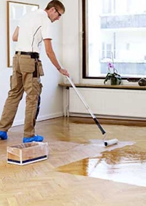Для начала просто ошкурим поверхность мелкозернистой наждачной бумагой. Образовавшийся мусор тщательно убираем с помощью пылесоса. Затем с помощью широкого валика наносим новый слой лака. Если вам важны экологические показатели, выбирайте лак на водной основе – он менее токсичен, его запах почти не ощутим. Правда, и тускнеет он быстро – черед 2-3 года вам придется заново покрывать пол лаком.