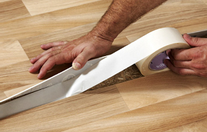Перед ремонтом покрытие надо хорошо подготовить: очистить от пыли, прогрунтовать и как следует высушить. Вздувшийся край линолеума отогните – с запасом, иначе неудобно будет работать. Если повреждение не очень большое, можно устранить его с помощью плотной клейкой ленты. Надо просто поместить ее на стык между двумя кусками покрытия клейкой частью вверх, если необходимо, закрепить. Затем снять защитную пленку и прижать сверху двумя кусками линолеума, прогладить их руками или валиком. На некоторое время можно положить в этом месте груз.