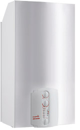 На фото слева показан навесной газовый котел фирмы CHAPPEE. Если отапливаемая площадь не велика (небольшой коттедж или квартира), то лучше приобрести навесной газовый котел. Он дешевле, выглядит эстетичней и оснащен автоматикой. Как правило, навесные котлы обладают мощностью не более 100 кВт, а значит и предназначены для площадей не более 80-90 кв.м.