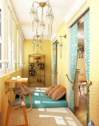 Важным фактором в оформлении балкона или лоджии является цвет. Если хватит желания и фантазии, мы просто распишем стены разноцветными красками – в полоску, горошек, в цветочек или на манер шахматной доски. Только если помещение выходит на солнечную сторону увлекаться яркими красками все же не стоит. Долго на таком балконе вы находиться не сможете. Смягчить обилие солнца помогут спокойные, прохладные тона: от нежно-голубого до синего, а также зеленый, сиреневый, благородный серый. Там, где света мало, наоборот, согреваемся с помощью желтого, оранжевого, терракотового и даже красного!