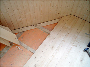Сверху утеплитель обшивается вагонкой или другим выбранным вами материалом.Также необходимо утеплить пол – без этого все другие мероприятия по обустройству балкона сойдут на нет. Лучше всего утеплять пол шпунтованными досками, уложенными на лаги с утеплителем. Чтобы в дальнейшем избежать появления щелей в досках, лучше укладывать их поперек. Нередко для этих целей используются разновидности теплых полов. Это самый предпочтительный способ утепления пола, особенно при объединении балкона (или лоджии) с жилым помещением – тепло распределяется равномерно, и при этом не сжигается кислород.