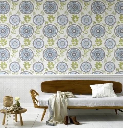 Расплывчатые крупные пятна обладают ярко выраженным декоративным эффектом. Они создают ощущение игры света и тени, у многих вызывая ассоциации с морскими волнами, играющими на солнце. И все же, повторюсь, не стоит ставить эксперимент над своими нервами и оклеивать "крупным пятном" всю комнату.