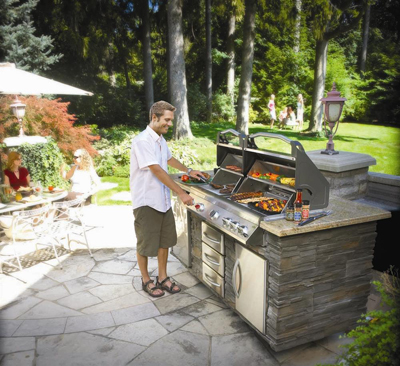 И, наконец, очередь пришла и до заморского садового барбекю. Их главная особенность – печь-жаровня, назначение которой готовить на углях рыбу и мясо. Все модели снабжены ящиком для углей, шампурами и решеткой, а навороченные имеют терморегулятор. Самым распространенным вариантом является барбекю округлой формы – весьма символично, что именно круг представляет собой домашний очаг, вокруг которого собирается не только вся семья, но и близкие друзья семьи. А натуральный камень, используемый в качестве строительного и отделочного материала, продлит срок эксплуатации вашего барбекю на несколько поколений. Если даже вы читаете статью, сидя в "хрущевке" на узеньком балконе, это не помешает вам начать мечтать. Ведь и великие идеи начинались именно со смелой мысли. Психологи рекомендуют, даже не имея средств на покупку, примерять дорогую одежду. Этим вы становитесь к ней на шаг ближе. Примерьте и вы на себя летнюю кухню.
