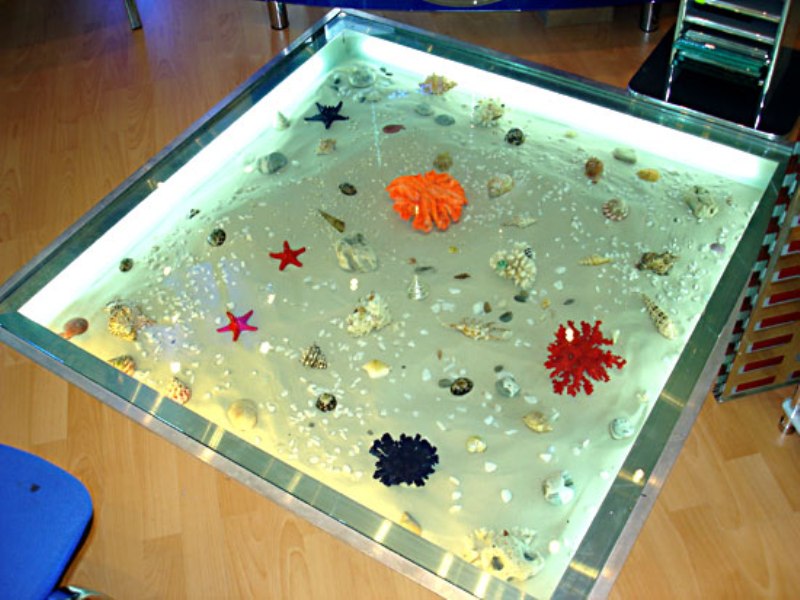 Итак, приступим. В качестве декоративного материала можно использовать следующее: песок, мелкую гальку, ракушки, бусинки, сухоцветы и многое другое, чего потребует конечный результат вашего творчества. Чаще всего стеклянный пол устанавливается вместе с подсветкой, иначе невозможно оценить всю его прелесть и эффектность. Но для добавления дополнительных источников света, сначала нужно определиться, в каком порядке они будут устанавливаться. Выбор расцветок также на ваше усмотрение — без ограничений! Однако, прежде чем приступить к работе над освещением, мы расскажем вам главные особенности использования световых приборов.