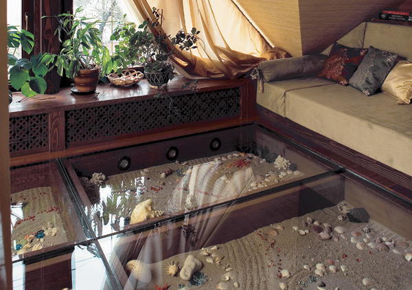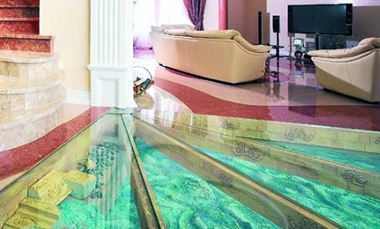 Установка стекла на полу не является окончательным результатом напольных работ, хотя и этот процесс достаточно трудоемкий. Для некоторых, именно вторая часть - самая интересная и увлекательная. Ведь стеклянный пол легко декорировать, размещать на нем красивые аппликации, тонировать и оснащать подсветкой. А кто-то умудряется разместить там аквариум или террариум. Но начнем все по порядку.