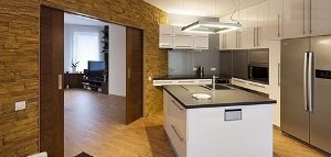 Кстати, плита в кухне должна быть электрической, но без духового шкафа – так коляске удобнее подъезжать в рабочую зону – для этого есть специальные консоли с конфорками из серии встраиваемой техники. Духовой шкаф в этом случае можно разместить на столе или над ним на креплении-лифте.