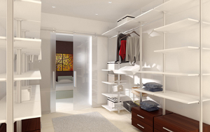 Отсутствие дверей позволяет коляске вплотную подобраться к нужной секции. Если какую-то часть вещей все же надо спрятать, используйте раздвижную дверь. Магазины товаров для дома предлагают множество корзин, ярких разноцветных коробок и шкатулок – как раз для таких целей. Раскладывайте по ним свои вещи и расставляйте на полочках! Только располагайте вещи правильно: те, что используются редко, можно убрать на самый верх, откуда возможно достать их только при посторонней помощи; то, что используется чаще, располагайте на высоте 120-130 см от пола – это оптимальная высота, до которой может дотянуться человек в коляске.