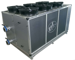 Чиллер - агрегат по охлаждению воды или иных жидкостей, в составе которого компрессорно-конденсаторные блоки и теплообменник, высокотемпературного режима работы для работы в системах вентиляции и кондиционирования, также высоко-среднетемпературного режим