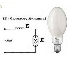 Газоразрядная лампа высокого давления типа ДРЛ (дуговая ртутная с люминофором).Номинальная мощность: 250 Вт.