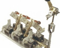 Рубильник — простейший электрический коммутационный аппарат с ручным приводом и металлическими ножевыми контактами, входящими в неподвижные пру читать далее жинящие контакты (гнёзда), применяемый в электротехнических цепях для включения/отключения нагрузки с большой силой тока.