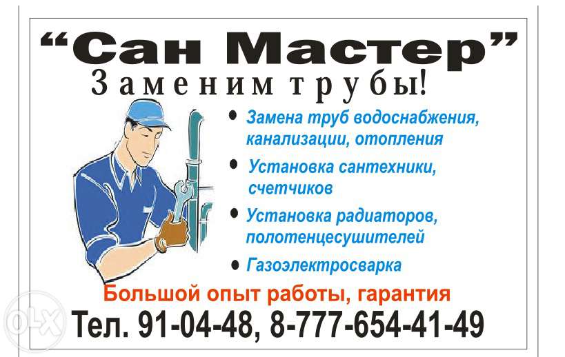 ИП "Санмастер". Срочная сантехническая помощь в Усть-Каменогорске! | Сантехнические услуги широкого спектра. Работаем более 16 лет. Рассрочка без %! Низкие цены! |