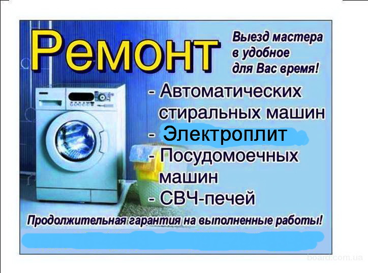 Вид работ: Ремонт стиральных машин автоматических и полуавтоматических