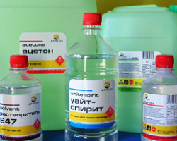 Изопропиловый спирт, бутилацетат, изобутиловый спирт, этилцеллозольв, этилацетат, ортоксилол, толуол, ацетон, растворители 646,647,650, Р-4, Р-5, Р-12, уайт-спирит, керосин, сольвент. В наличии. Продукция фасуется в 1 л., 5л., 10 л. канистры и в 30 л., 50, кг, 315