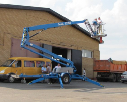 Предлагаем продажу / аренду / услуги (с оператором и без) коленчатый прицепной подъемник, работающий от аккумуляторов. С рабочей высотой 17 метров. Управление производиться как с кабины так и у основания подъемника. Возможна эксплуатация внутри помещений