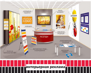 Интерьерная реклама, реклама внутри помещения (изготовление, монтаж).