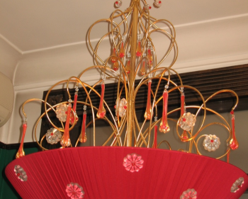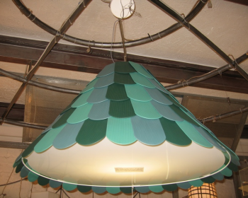 Люстра в стиле кантри с зеленым абажуром под черепицу
