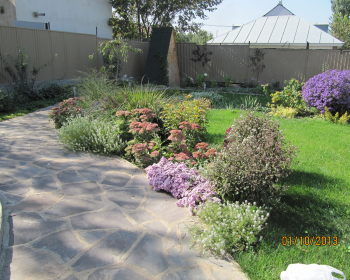 • устройство дорожек и подпорных стенок, декоративных бордюров в цветниках и небольших водоёмов;
