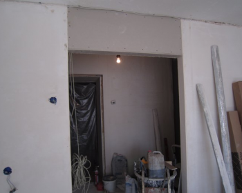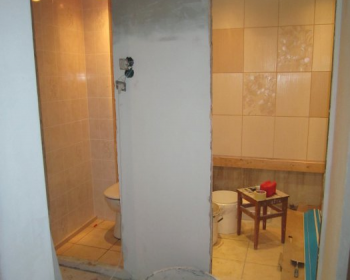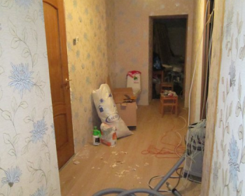 В самом начале работы мы сняли обои, но потом пришлось демонтировать сухую штукатурку, уж очень износилась она от времени. Затем выравняли и загрунтовали пол. Далее демонтаж окна и выравнивание основания под подоконник, устанавливаем откосы. Следующим этапом была штукатурка стен и формирование дверного проема, параллельно делаем ванную, так же штукатурим стены и укладываем плитку. Выводим освещение на потолок при помощи галогенок и блока плавного спуска. Потолок белый матовый реечный. В туалете процесс похожий - снимаем краску старую со стен, выкладываем напольную плитку на предварительно выравненный пол, далее плитка на стены, устанавливаем новый унитаз. Параллельно продолжаем отделку коридора и большой комнаты. формируем дверной проем. Натягиваем натяжной потолок и укладываем одинаковый во всей квартире ламинат. Устанавливаем освещение во всей квартире и крепим всякую мелочевку (полочки, крючочки). Заносим и устанавливаем старую, к сожалению, мебель. И конечно же, последний этап - генеральная уборка!